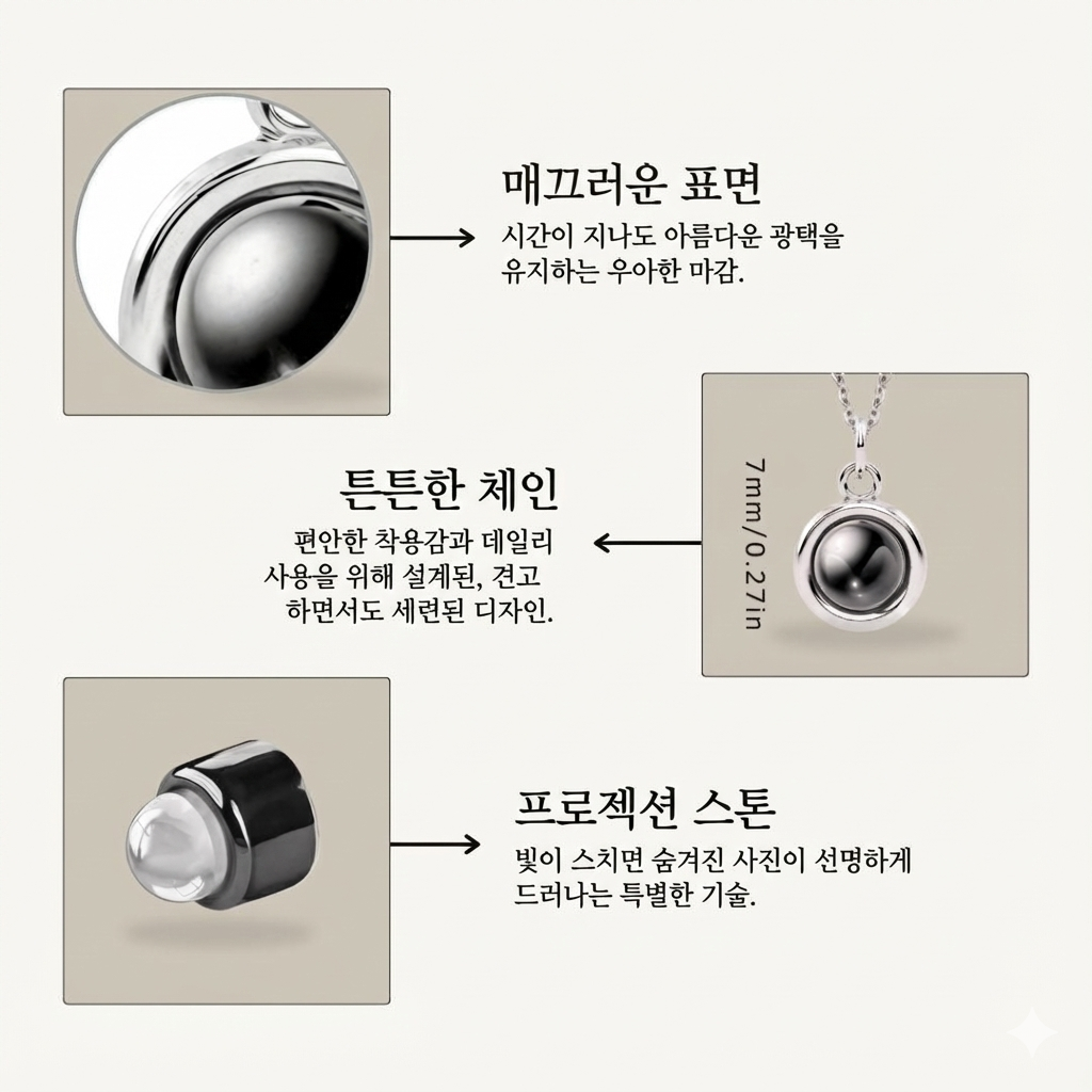 밝고 선명한 사진이 가장 예쁘게 투영됩니다. 인물/반려동물은 얼굴이 잘 보이는 사진이 적합합니다. 흐리거나 너무 어두운 사진은 제작 전 편집팀이 수정해드립니다.
